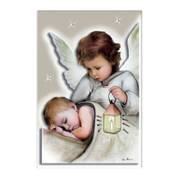 Obrazek Anioł Stróż malowany Podwójne Drewno 10x15 cm Prezent na chrzest