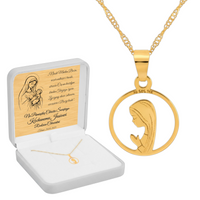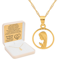 Złoty Komplet na Chrzest, Komunię, Bierzmowanie - Złoty Medalik 585 z Grawerem Matka Boska | Łańcuszek Ankier 585 | Pudełko z Twoją Dedykacją