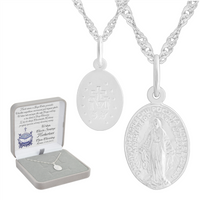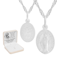 Prezent religijny: medalik srebrny z Maryją + łańcuszek Singapur + pudełko