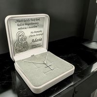 Srebrny krzyżyk z łańcuszkiem pr. 925 Pudełko Prezent na Komunię, na Bierzmowanie