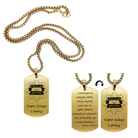 Nieśmiertelnik stalowy złoty z łańcuszkiem 60 cm Grawer Prezent dla mundurowego