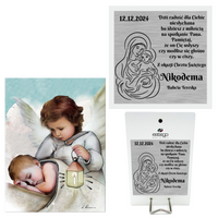 Obrazek malowany na drewnie Twój Anioł Stróż Dedykacja 9x11 cm Prezent na Chrzest