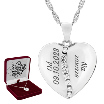 Romantyczny naszyjnik serce srebrne z cyrkoniami, grawer i dedykacja na tabliczce