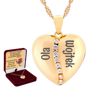 Elegancki naszyjnik serce srebro 925 pozłacane 24K z grawerem na obu połówkach