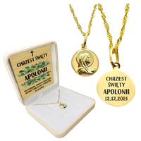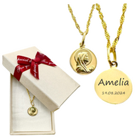 Złoty Medalik 585 z Matką Boską – Łańcuszek Singapur z Grawerem w Pudełku z Dedykacją