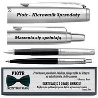 Szukasz eleganckiego prezentu na urodziny? Zestaw Parker Jotter z grawerem będzie idealnym wyborem. Długopis i pióro wieczne w jednym zestawie sprawiają, że jest to upominek nie tylko praktyczny, ale i niezwykle estetyczny. Dzięki możliwości personalizacji, staje się to upominek, który na długo zapadnie w pamięci obdarowanego.