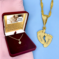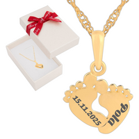Złoty Naszyjnik Podwójne Stópki 585 z Grawerem – Łańcuszek w Pudełku z Dedykacją