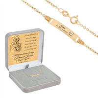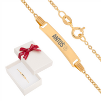 Dziecięca złota bransoletka 585 z blaszką grawerowaną 16 cm 1,2 g w pudełku prezentowym