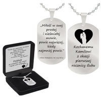 Nieśmiertelnik stalowy srebrny Grawer Gratis w pudełku prezentowym