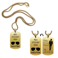 Nieśmiertelnik stalowy złoty z łańcuszkiem 60 cm Grawer Prezent dla mundurowego