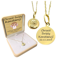 Złoty Komplet na Chrzest, Komunię, Bierzmowanie - Złoty Medalik 585 z Grawerem Matka Boska | Łańcuszek Ankier 585 | Pudełko z Twoją Dedykacją